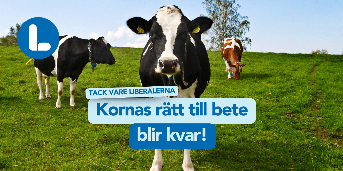 På senare tid har kornas rätt att beta utomhus ifrågasatts. Sedan 1988 är det inskrivet i lag att mjölkkor ska få tillgång till grönbete under sommaren – en lag som Astrid Lindgren en gång bidrog till att få på plats. När en statlig utredning i fjol föreslog att beteskravet skulle avskaffas för att öka konkurrenskraften, möttes förslaget av hård kritik. Liberalerna markerade tidigt att vi tänkte ta strid.